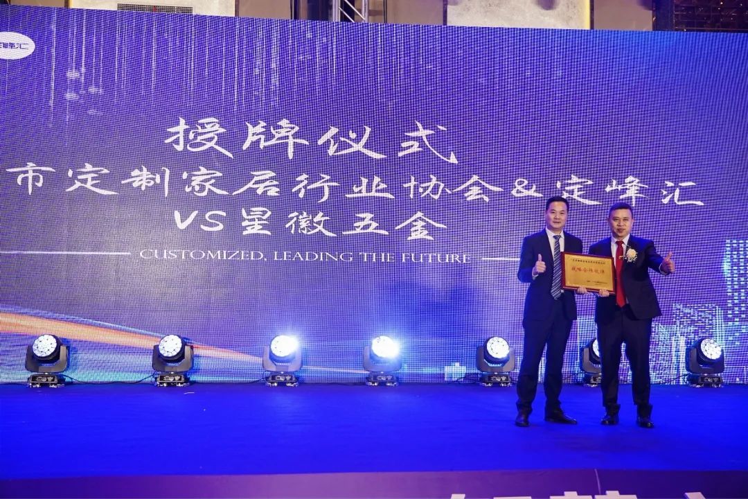 星徽精密長期與廣州市定制家居協(xié)會會長單位進行戰(zhàn)略合作,得到了會長單位的高度認可和贊譽!在此次年會上,定峰匯&廣州市定制家居協(xié)會和廣東星徽精密制造股份有限公司進行了正式簽約和授牌。